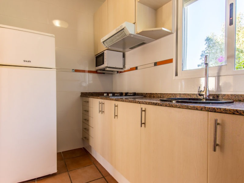 Tienen una cocina/comedor con nevera, televisión, microondas y todos los utensilios necesarios, 1 baño completo y pequeño porche con mesas y sillas para el exterior, pasar fantásticos ratos en las temporadas de más calor.
